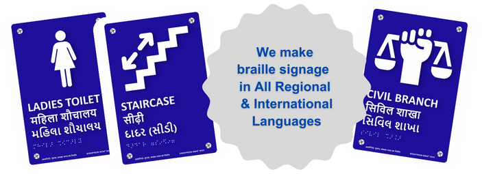 Signxpress India specializes in custom-made Braille signage, designed for accessibility in public and private spaces. We offer high-quality, durable signs in acrylic, stainless steel, and MDF, tailored to client needs with tactile text, symbols, and Grade 1 Braille.