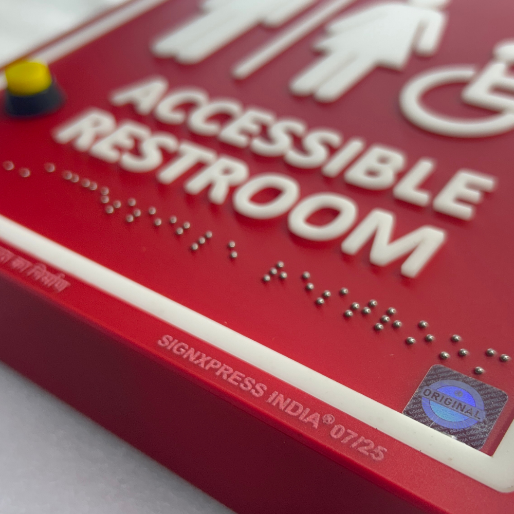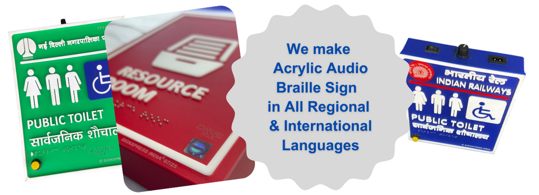 Signxpress India specializes in custom-made Braille signage, designed for accessibility in public and private spaces. We offer high-quality, durable signs in acrylic, stainless steel, and MDF, tailored to client needs with tactile text, symbols, and Grade 1 Braille.