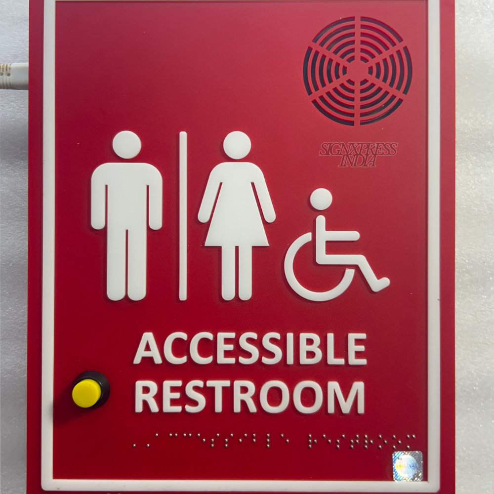 Our Audio Acrylic Braille Signs offer both tactile and auditory accessibility for visually impaired individuals. Crafted from durable, high-quality acrylic, they include raised text, Grade 1/2 Braille, and an integrated audio playback system triggered by touch or motion. These signs are fully customizable in size, color, language, and content, making them ideal for hospitals, metros, airports, and smart city projects. They comply with ADA and Accessible India Mission (Sugamya Bharat Abhiyan) standards.