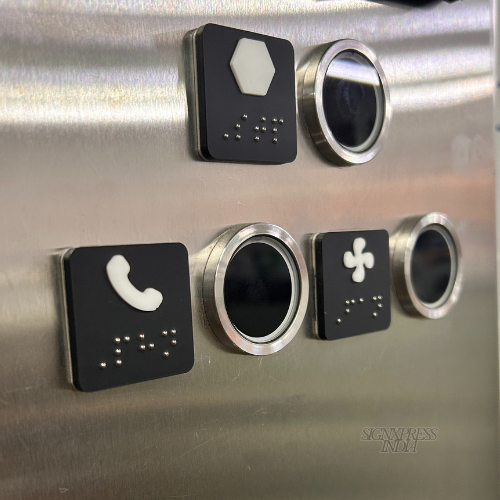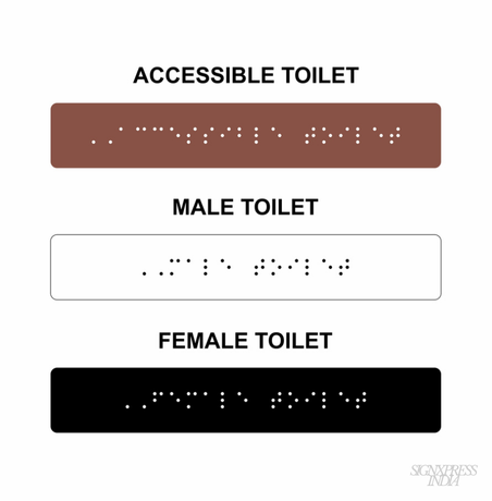 Signxpress India specializes in custom-made Braille signage, designed for accessibility in public and private spaces. We offer high-quality, durable signs in acrylic, stainless steel, and MDF, tailored to client needs with tactile text, symbols, and Grade 1 Braille.