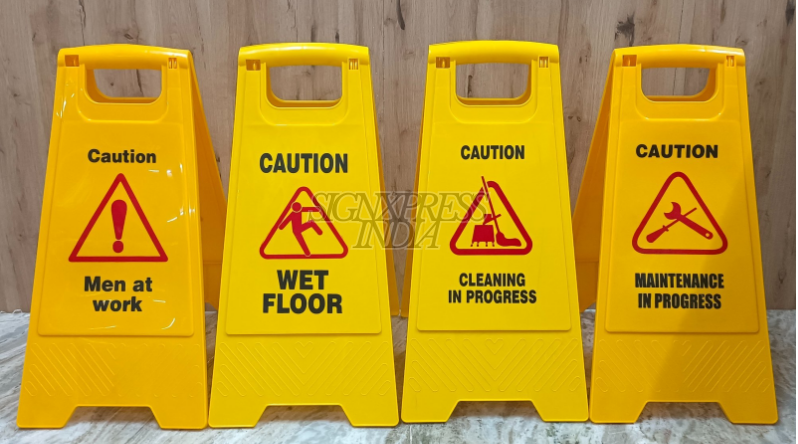 SignXpress India’s Caution Boards are essential for alerting pedestrians and motorists about hazards, maintenance activities, or restricted zones. Designed for high visibility and easy mobility, they are ideal for construction sites, industrial areas, public roads, and facility maintenance.