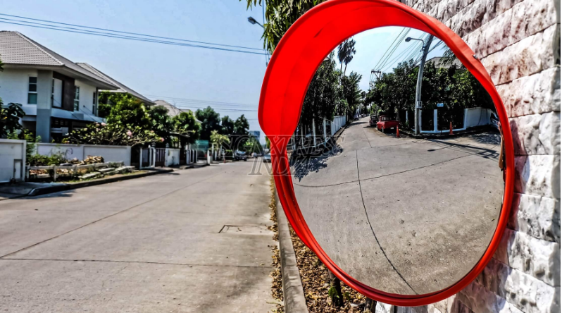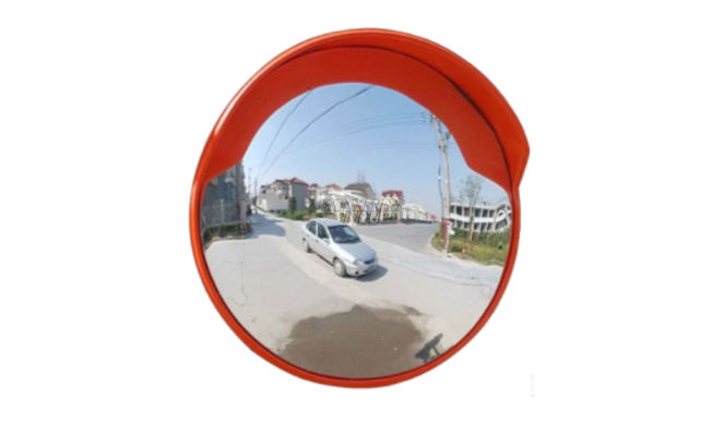 Shatterproof acrylic lens, UV resistant, weatherproof, wide-angle view, impact-resistant frame, easy installation, durable, low maintenance, enhances visibility for road and workplace safety.