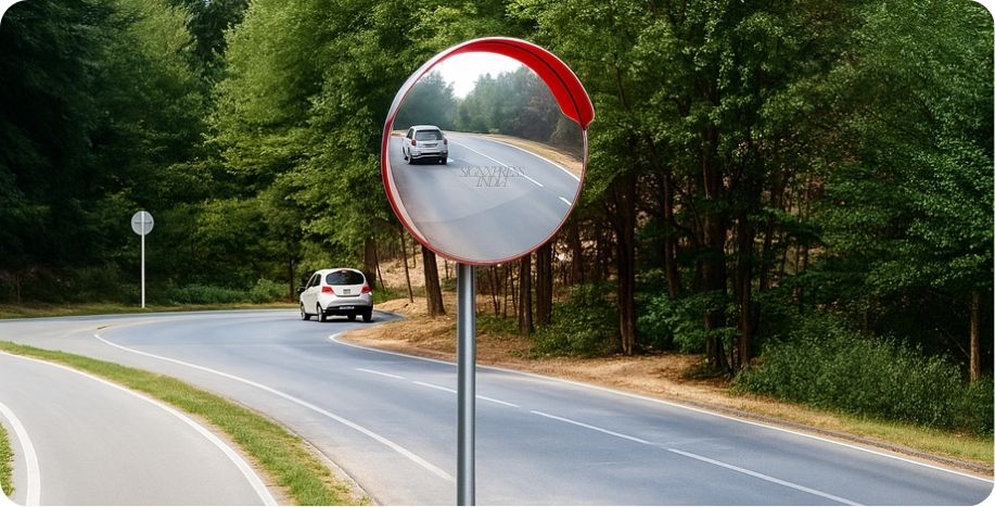 SignXpress India’s Convex Mirror is a premium safety device designed to eliminate blind spots and enhance visibility at intersections, driveways, parking lots, and industrial zones. Made from high-quality polycarbonate or acrylic, it offers a wide-angle view, impact resistance, and weather durability. Easy to install, it ensures better surveillance and accident prevention.