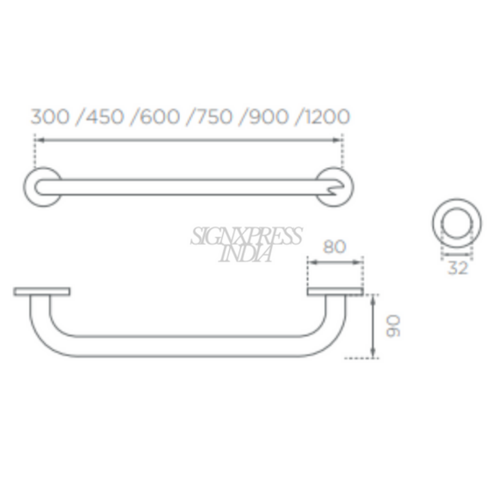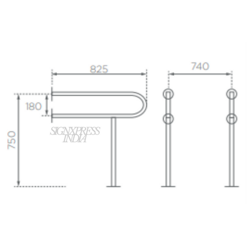 Signxpress India’s Accessible Grab Bar is made from high-grade SS304 stainless steel, ensuring strength, durability, and corrosion resistance. Designed for safety and accessibility, it features a smooth, anti-slip finish, supports heavy weight, and is ideal for restrooms, ramps, and accessible spaces. Available in multiple sizes and installation types.