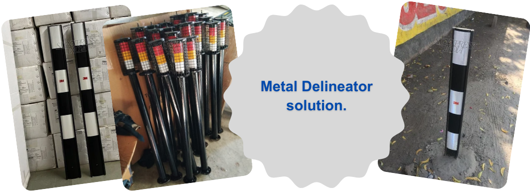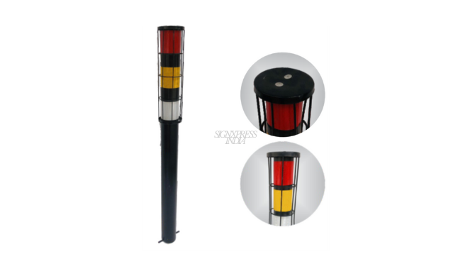 SignXpress India’s Metal Delineator is a robust and highly visible road safety device engineered to guide and alert motorists, especially in low-light and night-time conditions. Fabricated using heavy-duty galvanized or powder-coated MS pipe, it is equipped with high-intensity reflective bands to ensure 360° visibility. Its sturdy construction and weather-resistant finish make it ideal for long-term outdoor use.