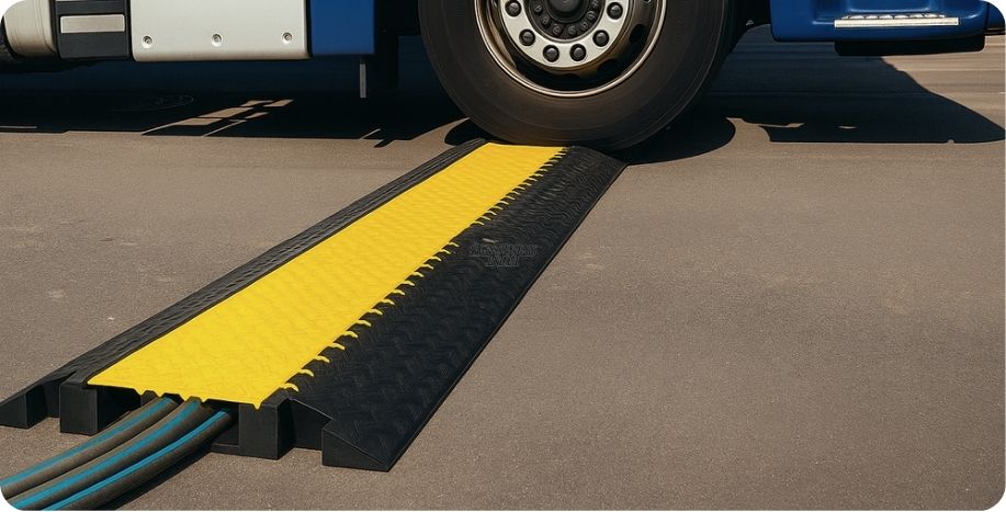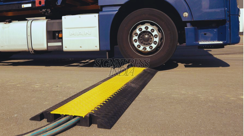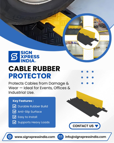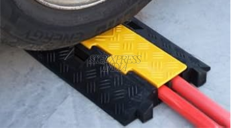 SignXpress India’s Cable Protector is a durable, heavy-duty solution designed to safeguard cables and wires in high-traffic areas. Made from strong rubber or PVC, it prevents tripping hazards and damage. Its interlocking design ensures stability, while high-visibility colors and anti-slip surface enhance safety in industrial, commercial, and event settings.