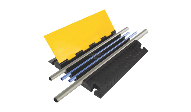 High-strength rubber body, UV resistant, weatherproof, anti-slip surface, multi-channel design, load-bearing, easy installation, durable, low maintenance, protects cables and hoses from damage.
