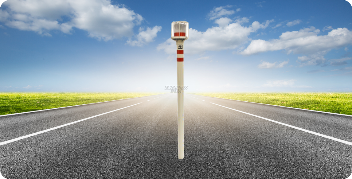 SignXpress India’s Solar Delineators are advanced, eco-friendly road safety devices that enhance visibility in low-light and night-time conditions. Equipped with solar-powered LEDs and durable reflective bodies, they effectively guide motorists through sharp curves, dividers, barriers, and accident-prone zones.