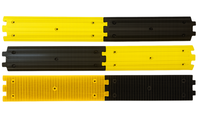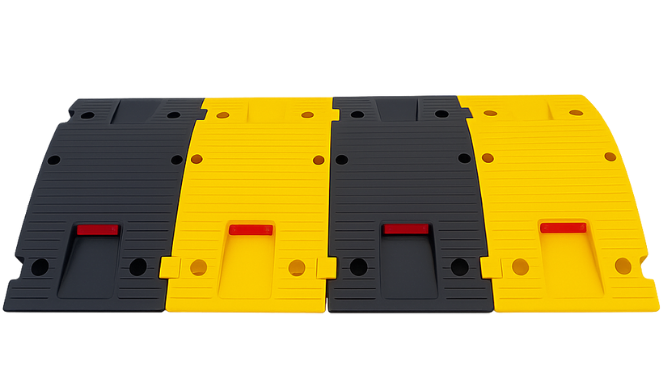 High-strength rubber, UV resistant, reflective tape, modular design, anti-skid surface, load-bearing, easy installation, weatherproof, low maintenance, durable.