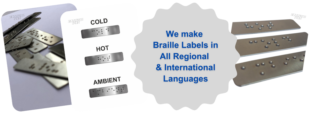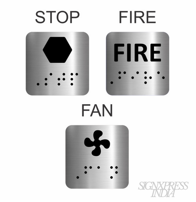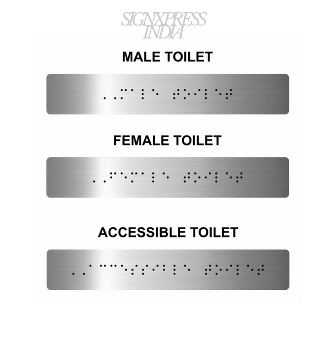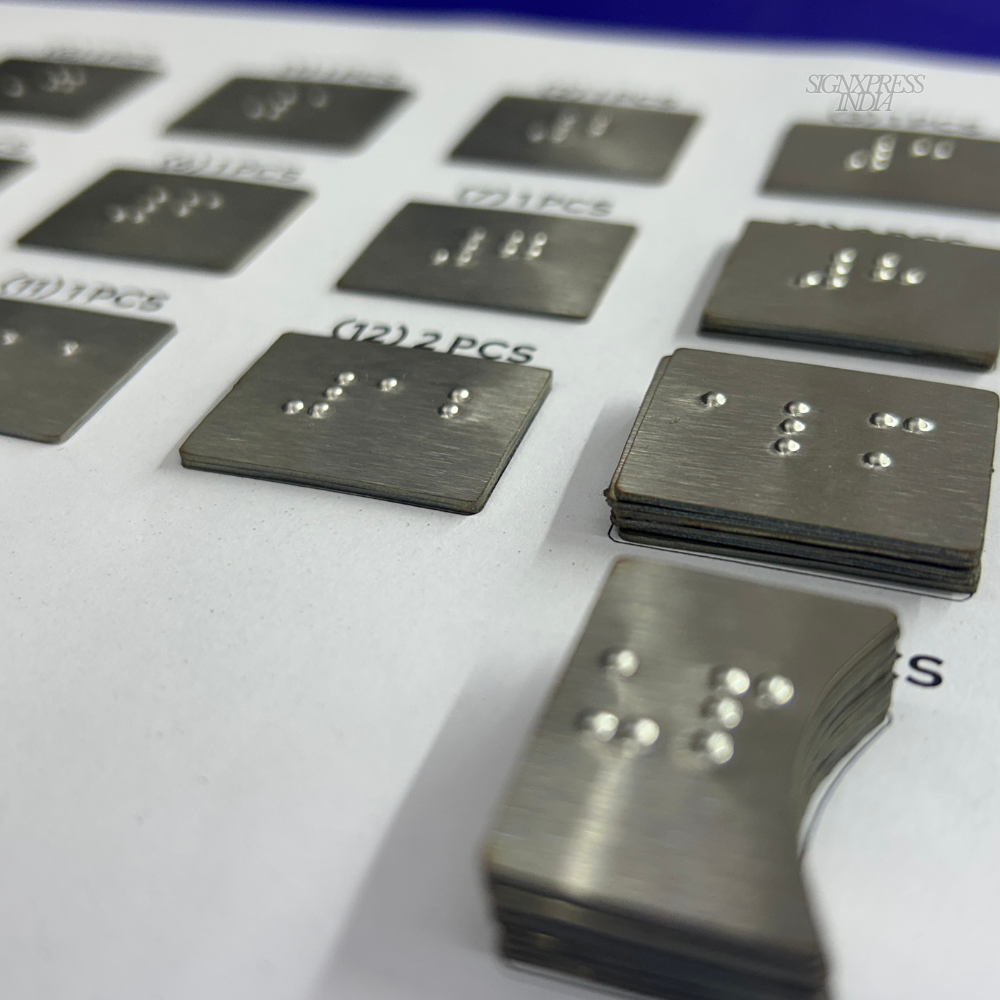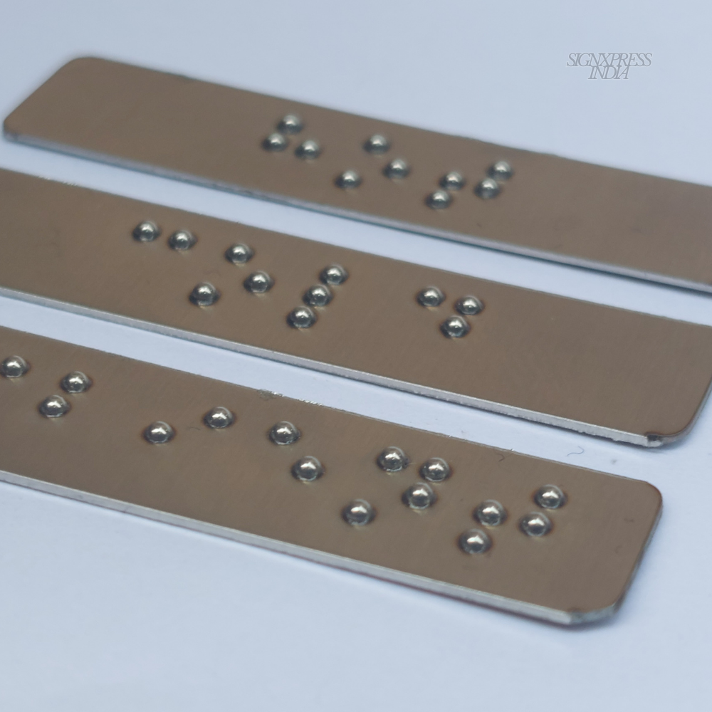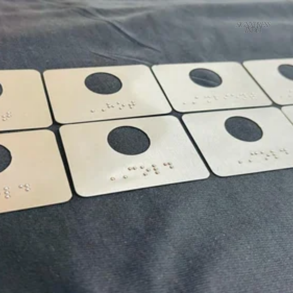 Signxpress India specializes in custom-made Braille signage, designed for accessibility in public and private spaces. We offer high-quality, durable signs in acrylic, stainless steel, and MDF, tailored to client needs with tactile text, symbols, and Grade 1 Braille.