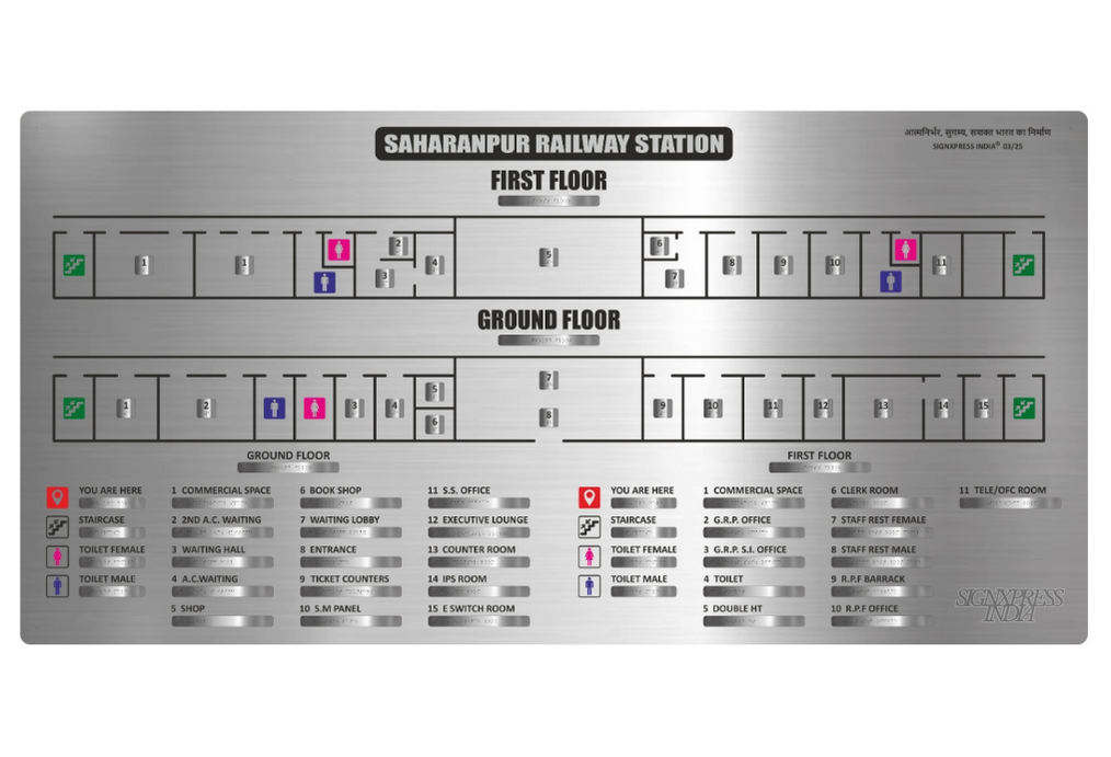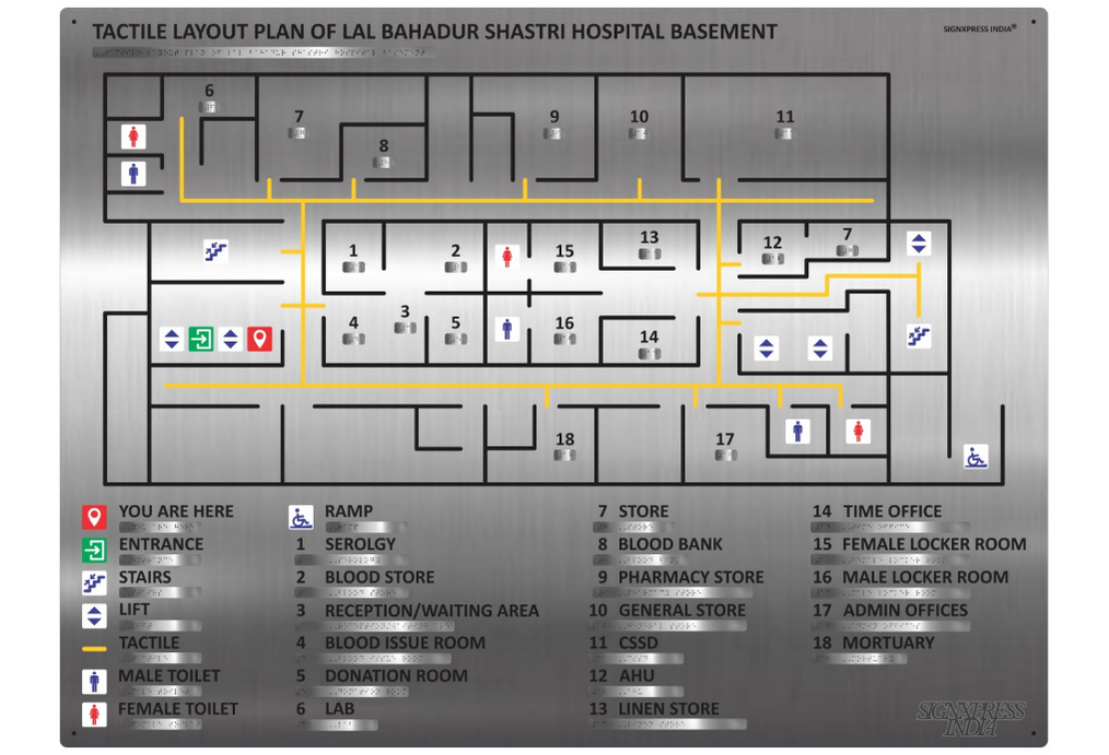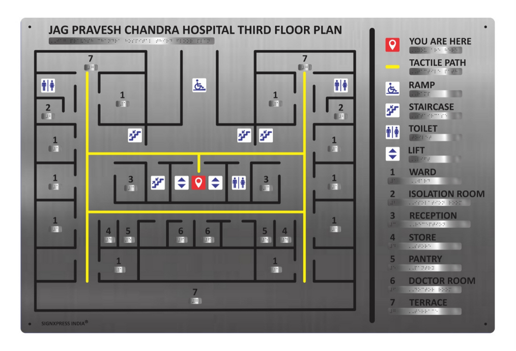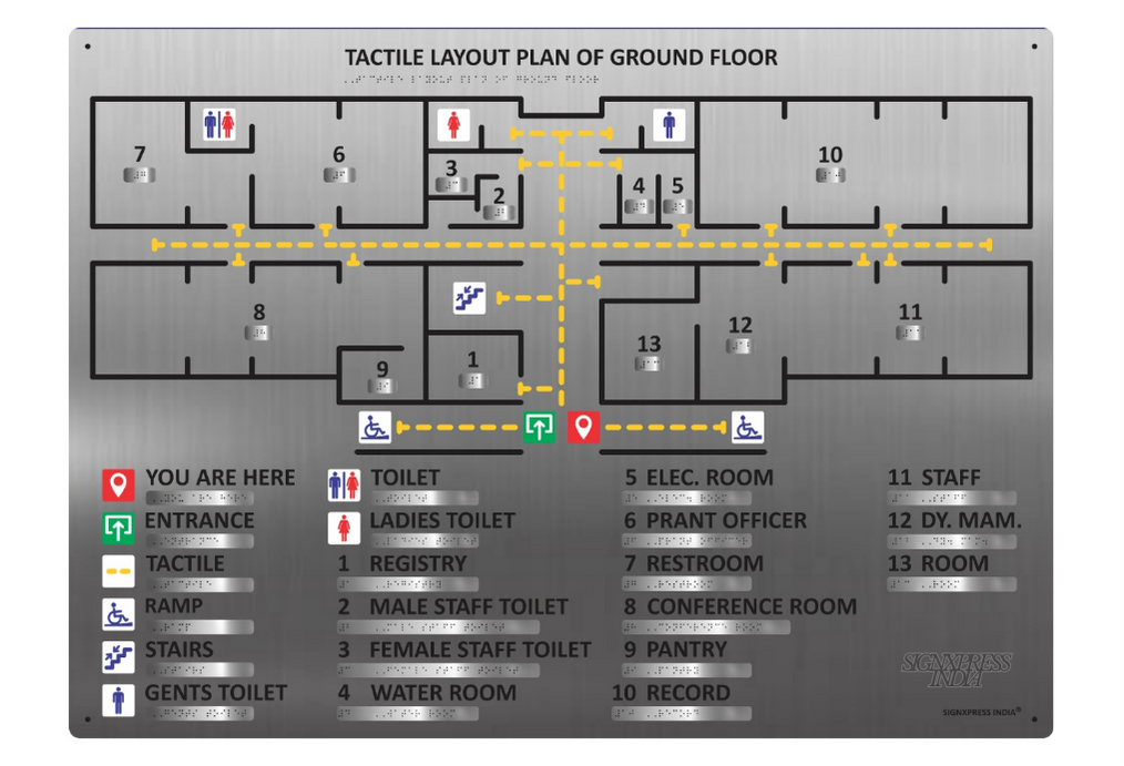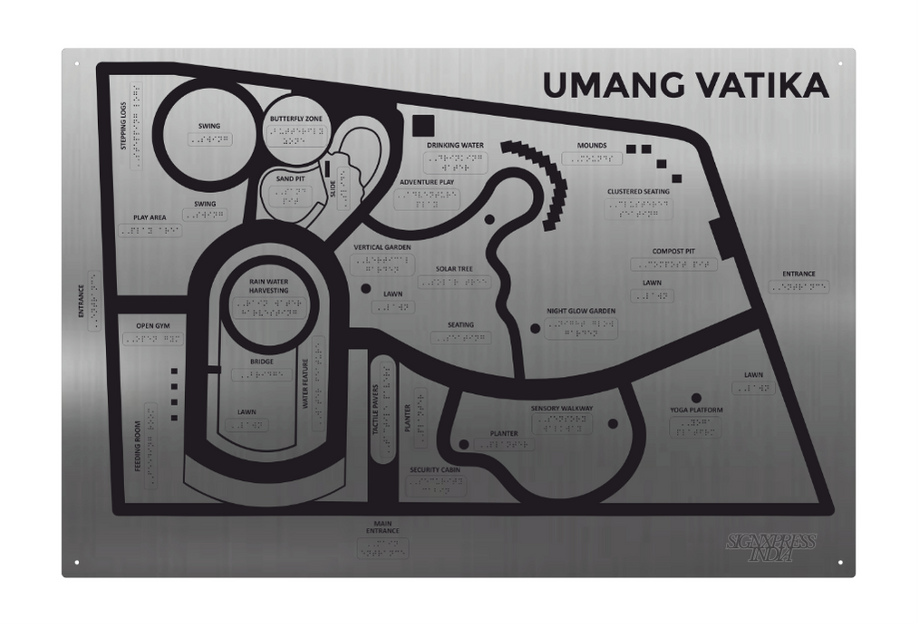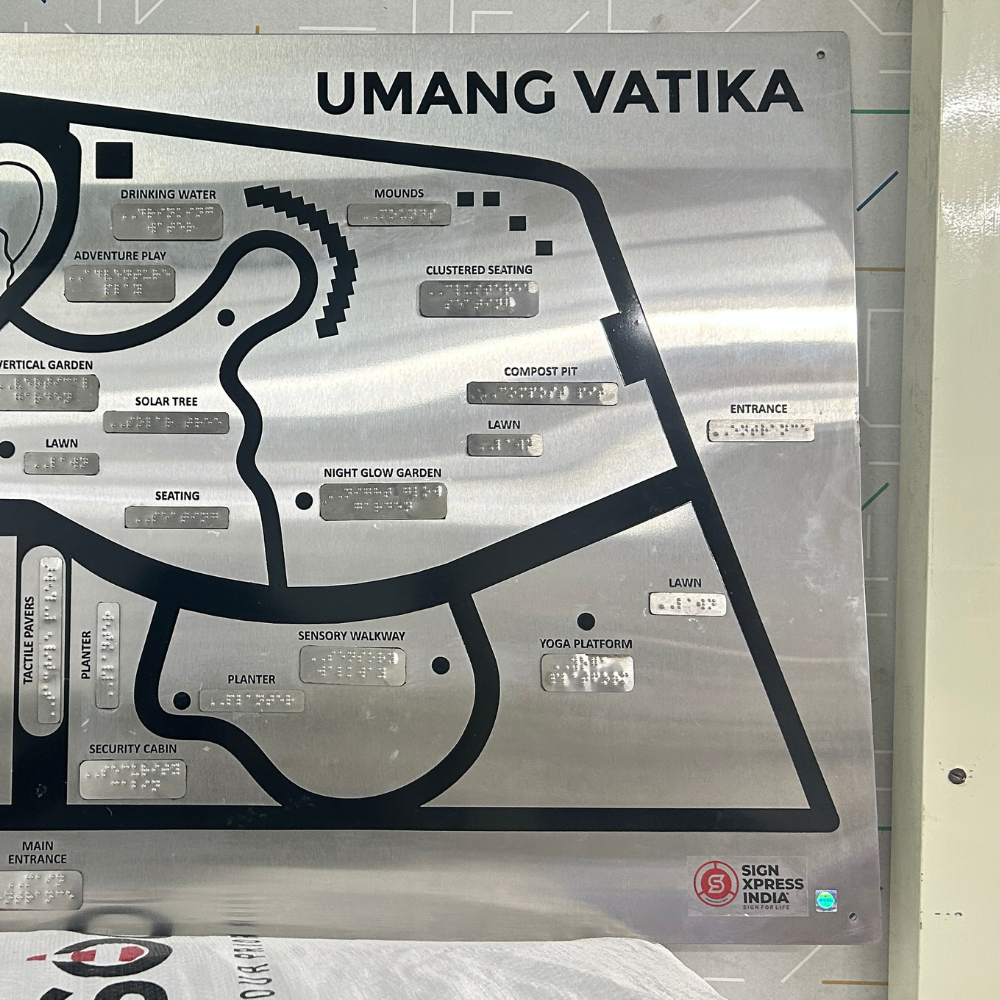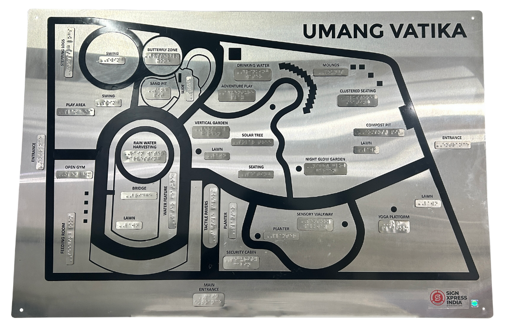 Signxpress India specializes in custom-made Tactile Maps signage, designed for accessibility in public and private spaces. We offer high-quality, durable Tactile Map signs in acrylic, stainless steel, and MDF, tailored to client needs with tactile text, symbols, and Grade 1 Braille.
