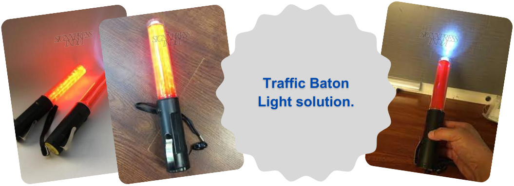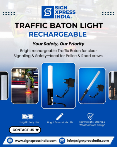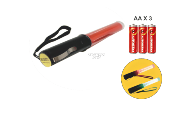SignXpress India’s Baton Light is a durable, high-visibility signaling tool ideal for traffic control, parking management, and security operations. Made from impact-resistant materials, it features bright LED illumination with flashing and steady modes. Lightweight and easy to handle, it ensures clear guidance in low-light or night-time environments.